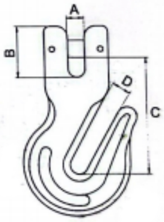 O gancho de fixação G80 é um componente de conexão para serviços pesados projetado para operações de elevação, tração e fixação, disponível em cinco variantes de tamanho para atender a diversos requisitos de carga. Suas principais especificações incluem: números de estoque GMC290281 (9/32-1/4 polegada, 3500 lbs W.L.L., 0,62 lb/PC), GMC290375 (3/8 polegada, 7100 lb W.L.L., 1,26 lb/PC), GMC290500 (1/2 polegada, 12000 lb W.L.L., 3,45 lbs/PC), GMC290625 (5/8 polegada, 18100 lbs W.L.L., 5,64 lbs/PC) e GMC290750 (3/4 polegada, 28300 lbs W.L.L., 10,40 lbs/PC), cada um com dimensões estruturais correspondentes (A/B/C/D em polegadas) para se adequar a espaços de instalação específicos.
